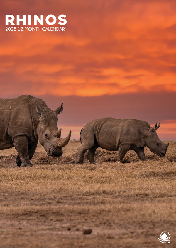 Rhinos Calendar 2025 CalendarsRus, Natural world desk calendar diary 2025.